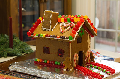 When I was a young lad, my mom made a gingerbread house every December, and I loved helping to decorate it. A few years ago, right after Sam was born, I revived the tradition. (I wanted to have a track record of building them so the first one when Sam was aware of what was going on wouldn’t be a disaster.) These days my mom buys the kits … and she offers me one every year. NEVER.